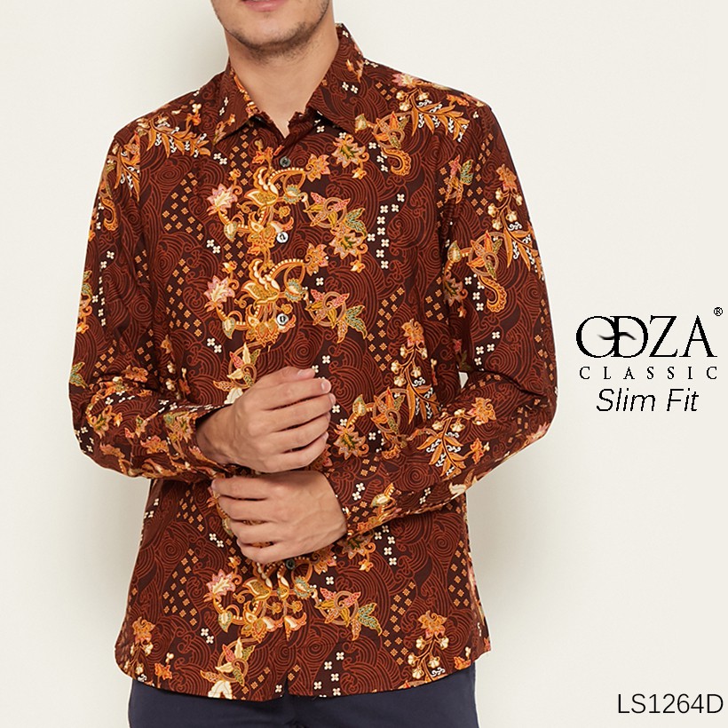Odza Baju Kemeja Batik Slim Fit Lengan Panjang Hem Batik Fashion