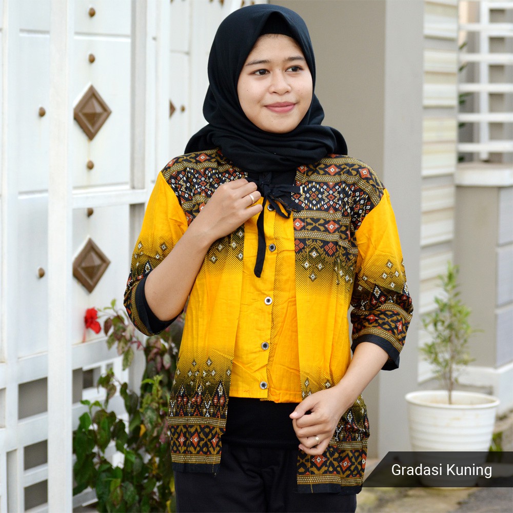 Banting Harga Pakaian W di Kabupaten Kapuas Hulu Trolistore Batik Wanita Motif Gradasi Kuning Lengan Pendek Grosir Batik Pekalongan dari Grosir Baju Trolis Kota Pekalongan